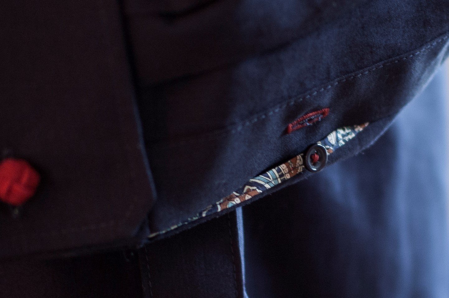 Als kleine Raffinesse lässt sich der Ärmelschlitz gestalten: Der innenliegende Teil kann farblich abgesetzt werden, beispielsweise passend zu einem ebenfalls abgesetzten Steg oder zu einer farblich anderen Knopfleiste.