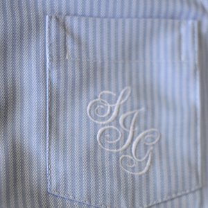 Ob auf oder unterhalb der Tasche oder aber auf der Manschette positioniert: Für die ganz individuelle Note lassen wir gern Ihre Initialen eisticken. Eine große Auswahl verschiedener Schriftarten bietet auch bei diesem kleinen Detail reichlich Gestaltungsspielraum.