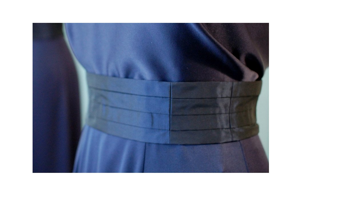 Die Farbe des Gürtels kann aus einer großen Farbkarte ausgewählt werden. Das besondere an diesem Material ist der zweifarbige Schimmer des Tafts. Dadurch können entweder Akzente gesetzt oder unterschiedliche Farben anderer Kleidungsstücke miteinander verbunden werden.